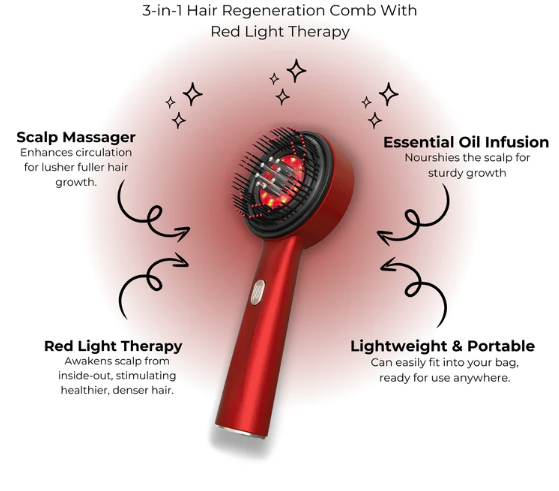 The Hair Growth Comb is here to help! Using red light therapy plus a ultrasonic vibration massage while infusing oils into the scalp, this comb boosts hair growth and brings back fuller, healthier hair.